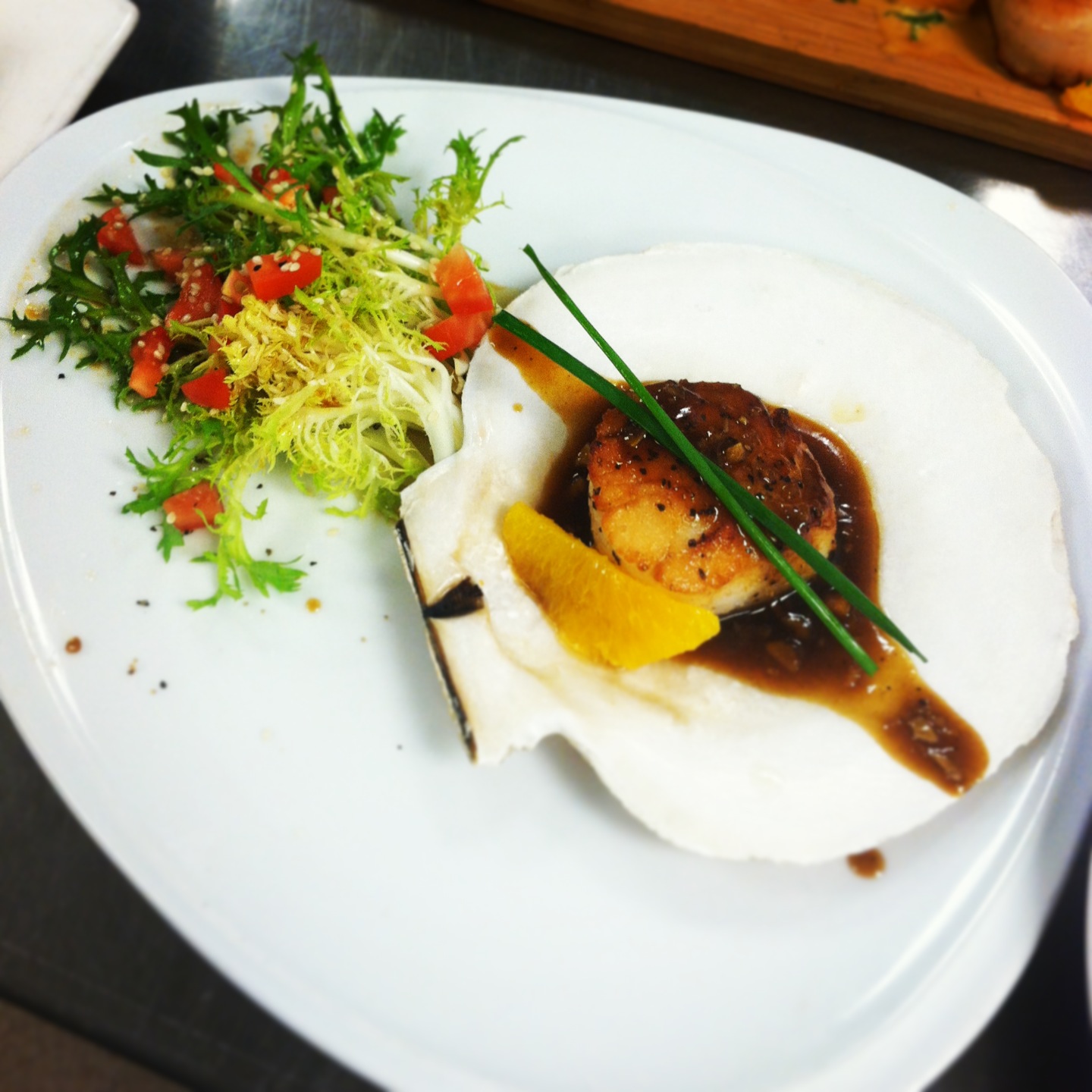 Seared Scallop and Frisee Salad Posted byfreezpawpMarch 27, 2014Posted inFoodTags:frisee, scallops, sesame, teriyaki, vinaigrette Seared scallop with orange teriyaki sauce and frisee salad with sesame vinaigrette. Share this: Click to share on Instagram (Opens in new window) Instagram Like Loading... Related
