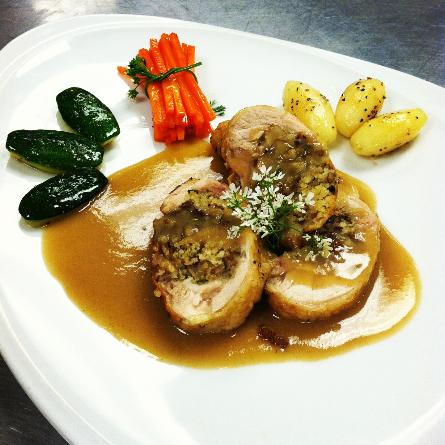 Chicken Ballotine Posted byfreezpawpMarch 30, 2014Posted inFoodTags:ballotine, carrots, chicken, gravy, mushrooms, pecans, potatoes, shallots, zucchini Chicken Ballotine with pecan, mushroom, shallot stuffing, gravy, carrots, zucchini and potatoes. Share this: Click to share on Instagram (Opens in new window) Instagram Like Loading... Related