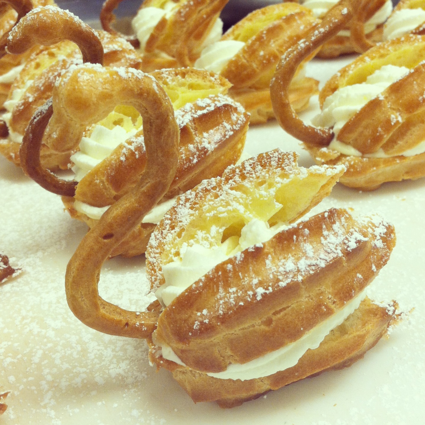 Cream Puffs and Eclairs Posted byfreezpawpMarch 30, 2014March 30, 2014Posted inFoodTags:chocoalte ganache, choux, choux paste, cream puffs, eclairs, pastry cream, pate a choux, swan, whipped cream These three pastries are all made from choux paste and pastry cream. Share this: Share on Instagram (Opens in new window) Instagram Like Loading... Related