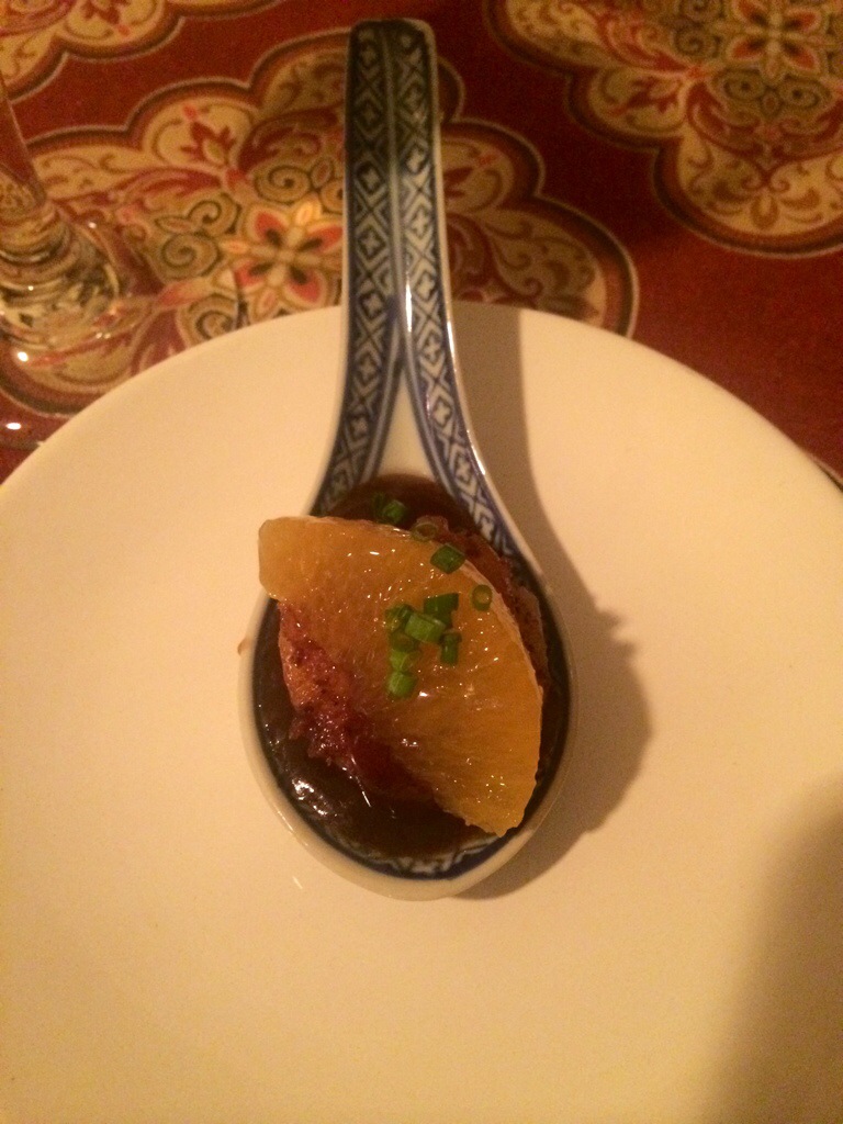 Seared scallop with teriyaki sauce, minneola orange, chives