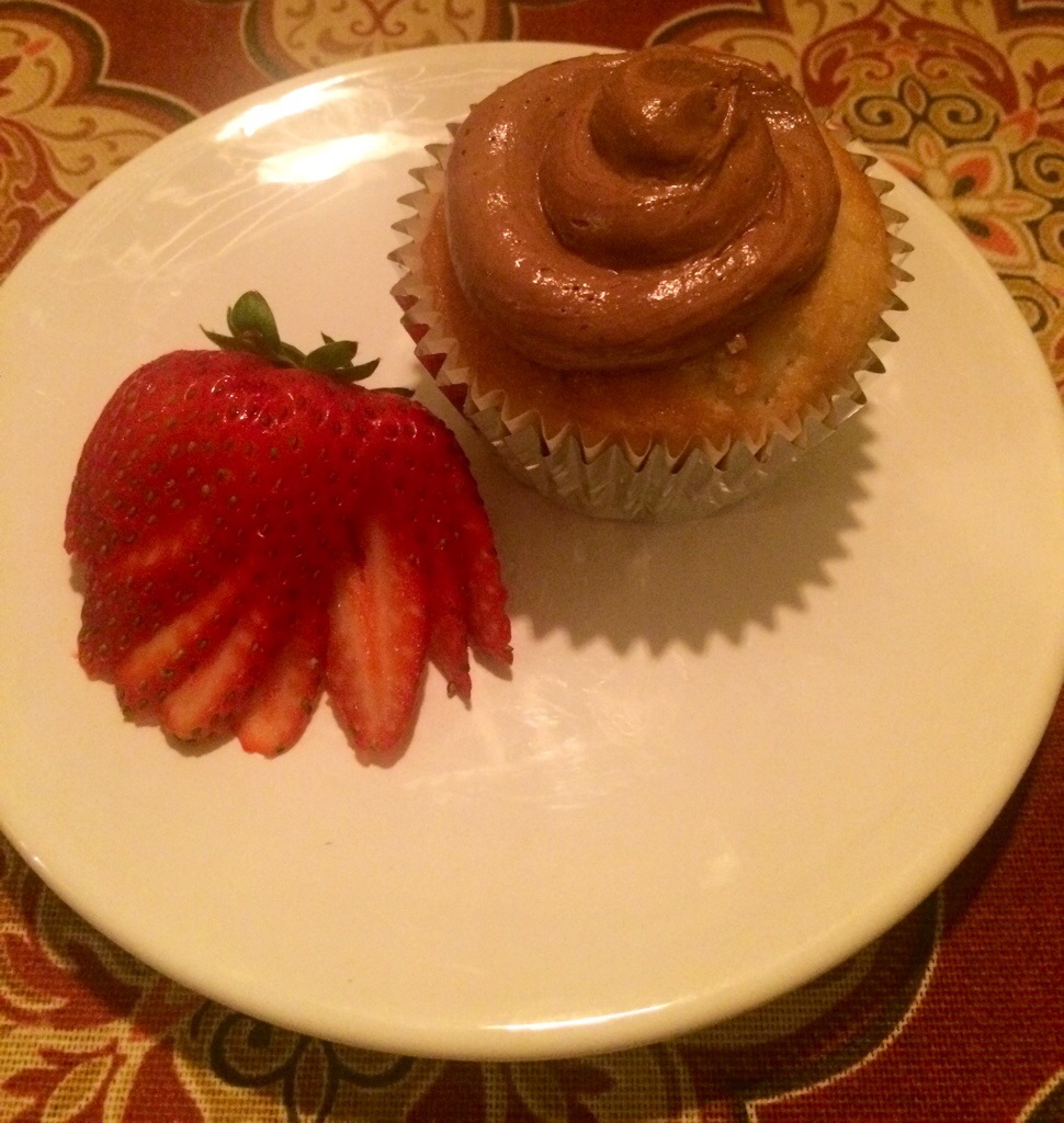 White cake cupcake with chocolate buttercream frosting